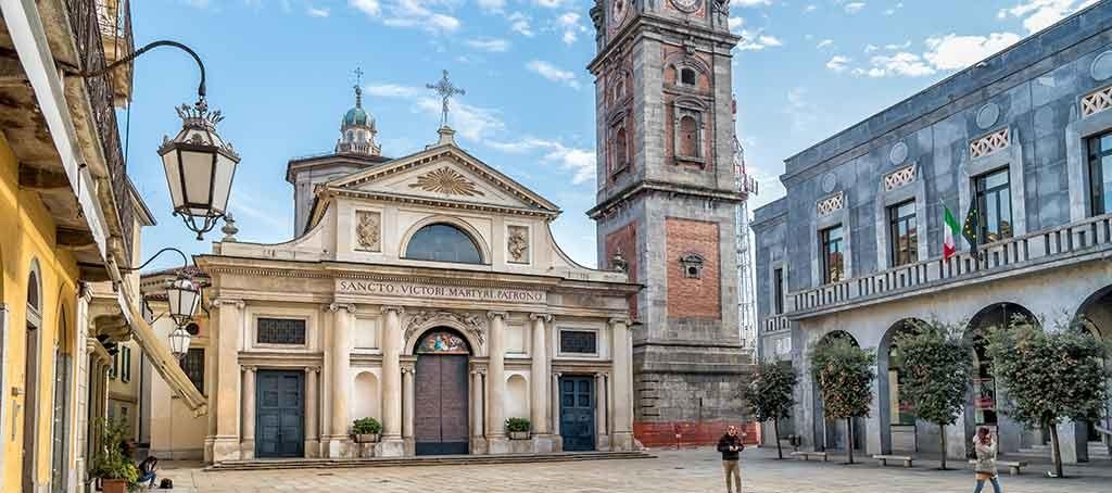 Villa Cagnola a GAZZADA SCHIANNO è un complesso monumentale del secolo XVIII che si estende su di un vasto parco collinare dalle essenze pregiate e che prospetta sulla conca del lago e prealpi varesini, dominata dall'imponente catena del monte Rosa. Testimonianza notevole della "civiltà in villa", ospita le preziose opere d'arte della "Raccolta Cagnola", nella miglior tradizione del collezionismo privato. Basterà citare qualche nome per dare un'idea dell'importanza della collezione: Antonio e Bartolomeo Vivarini, Jacopo Bellini, Ercole de' Roberti, Bernardino Luini, Bergognone, Butinone, Francesco Guardi, per quanto riguarda i dipinti. La raccolta offre inoltre motivi di più vasto interesse con gli arazzi, le sculture (Antonio Rosellino, Cristoforo Solari, Giambologna, Fantoni, Algardi, Pietro Bernini), le placchette di bronzo, i mobili, le maioliche e porcellane delle più importanti fabbriche d'Europa, oltre ad una preziosa collezione di ceramiche orientali. A far da cornice, un parco collinare dove è possibile ammirare alberi imponenti e pregiati. Sempre a Gazzada, la chiesa di Santa Croce può a vantare due pregevoli affreschi cinquecenteschi di Francesco De Tatti, mentre la cappella di Santa Maria Assunta vanta un ciclo di affreschi quattrocenteschi attribuibili a Galdino da Varese ed alla sua scuola. Capoluogo di questa verde provincia è VARESE, della quale visiteremo la Sala Veratti (ex refettorio di Sant'Antonino), interamente affrescata. Cuore religioso della città, la Basilica di San Vittore, il cui interno conserva pregevoli opere d'arte, e l'antico Battistero di San Giovanni, che conserva una vasca battesimale di scuola campionese, oltre a un ricco patrimonio di affreschi trecenteschi.